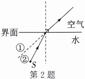 2. 如图是光源S发出的光线从水中斜射入空气中的光路图,下列关于人在岸上观察到光源S所成像的说法正确的是(