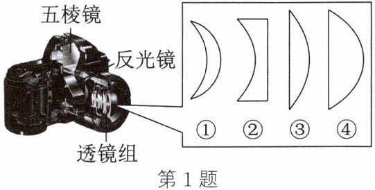 1. (2024·南京玄武期中)单反相机镜头由多种光学器件组成,其中较为重要的是透镜组,如图所示。透镜组中属于凹透镜的是(