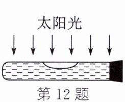 12. 将盛有清水的封闭试管水平放置,内有一个较大的空气泡,如图所示。阳光垂直照射试管,在空气泡下方的白纸上,出现一个椭圆形的“阴影”。“阴影”形成的原因是空气泡下方的水相当于一个