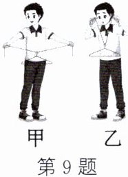 9. (2024·宿迁沭阳校级期中)如图所示,将衣架悬挂在棉线中央,如图甲所示,先通过空气听敲击衣架的声音,如图乙所示,再通过棉线听敲击衣架的声音,两次都能听到声音,但是效果明显不同。经分析与论证,能得到的结论正确的是(