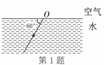 1. 一条光线从水中斜射入空气中时,其反射光线如图所示。请在图中画出入射光线和折射光线的大致位置。
