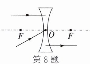 8. (2024·宜宾)如图所示,根据透镜对光的作用,将图中三条光线补充完整。