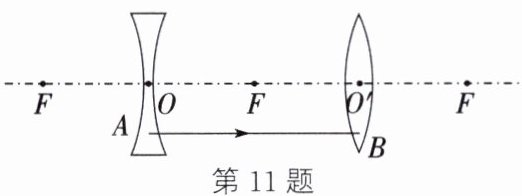 11. 已知图中的凹透镜和凸透镜的焦距相同,根据两种透镜对光线的作用,画出已知光线的入射光线和折射光线。