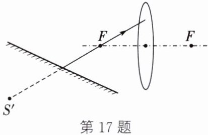 17. (2024·无锡江阴一模)如图所示,S'是点光源S在平面镜中所成的像,S发出的一条光线经平面镜反射后恰好经过凸透镜左侧焦点F。要求: