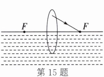 15. 如图所示,请作出凸透镜的入射光线和进入水中的大致的折射光线。