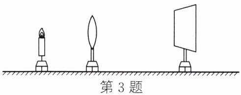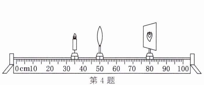 3. 如图所示,凸透镜焦距为10 cm,烛焰在图示位置时恰能在光屏上成清晰的像。现将蜡烛沿主光轴向同一方向移动20 cm,移动蜡烛的同时移动光屏,使烛焰始终能在光屏上成清晰的像,则光屏上的像 (