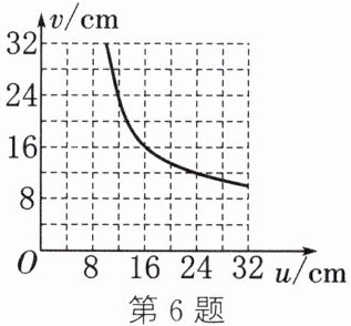 6. 小明同学在“探究凸透镜成像规律”的实验中,记录并绘制了像到凸透镜的距离v跟物体到凸透镜的距离u之间关系的图像,如图所示,该凸透镜的焦距是