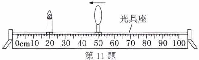 11. 如图所示,蜡烛位置不动,将凸透镜从图示位置开始向左移动,光屏(未画出)先后在凸透镜右侧的甲、乙两处得到烛焰清晰的像,且乙处的像比甲处大,则 (