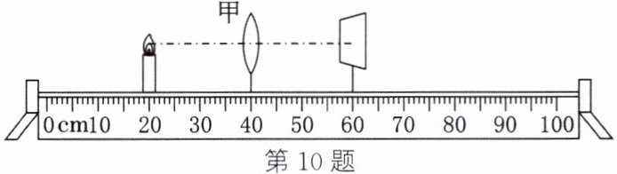 10. 当蜡烛、透镜甲和光屏在图示位置时,烛焰在光屏上成清晰的像(像未画出)。若保持透镜和光屏位置不变,将透镜甲换为透镜乙,将蜡烛向左移动距离s,可在光屏上再次成清晰的像,则(