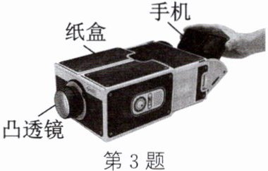 3. (2024·无锡新吴模拟)如图是小强用手机、凸透镜和纸盒自制的简易投影仪,能将手机上的画面放大投射到白色墙上。下列说法正确的是(