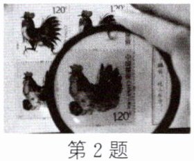 2. (2023·绥化)如图所示,小明通过焦距为15 cm的凸透镜观察到邮票正立、放大的像。下列说法正确的是(
