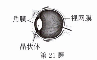 21. 如图所示,眼睛角膜是晶状体会聚光线的重要组成部分。激光治疗近视手术是运用激光精确切削眼睛角膜基质层,制作出均匀完美的角膜瓣和角膜透镜,以矫正患者近视。手术的结果是(
