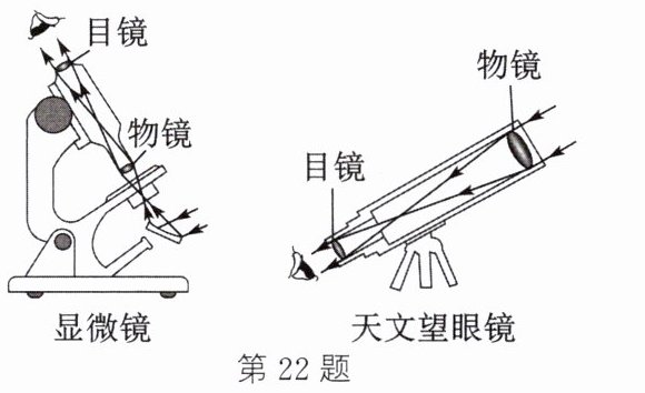 22. 如图所示为显微镜和天文望远镜的示意图,关于两种仪器下列说法错误的是(