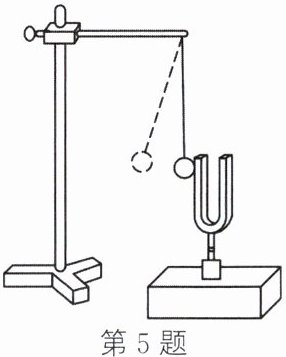 5. (2024·南通海安期中)如图所示,小明将悬挂的轻质小球紧靠音叉,用小锤轻敲和重敲音叉时,小球弹开的角度不同。比较角度的大小是为了探究(