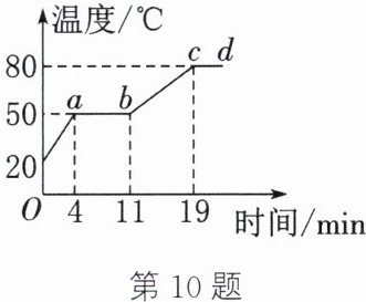 9. 小美同学对冰加热。她将冰熔化成水直到沸腾的过程,绘制成如图所示的温度随时间变化的图像。下列分析正确的是(