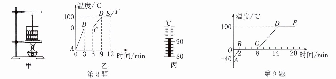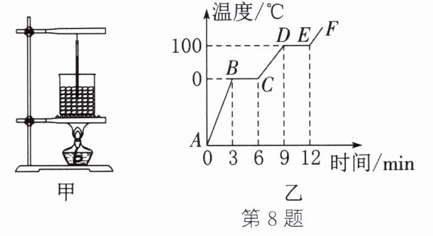 8. 小宇同学用如图甲所示的装置对冰进行加热,根据实验记录画出温度随时间变化的图像,如图乙所示。请回答下列问题: