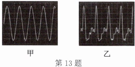 13. (教材P21材料改编)在相同时间内两列声波在同一示波器上显示的波形如图甲、乙所示,则两列声波的(