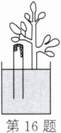 16. (2024·常州)盆栽养护应"土壤含水不浇水,土壤干时要浇水"。春季,小明自制"土壤含水显示仪",探测花盆内土壤是否含液态水。如图,中午将试管倒插入土壤深处,傍晚发现试管内上端出现水珠,说明土壤含液态水。从土壤含液态水到试管内出现水珠,发生的物态变化是(