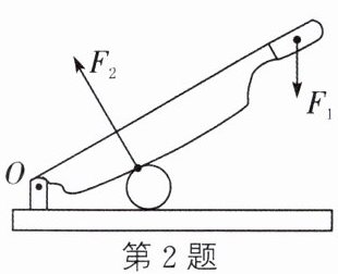 2. 如图所示为铡刀切甘蔗时的示意图,请在图中画出作用在铡刀上的动力$F_{1}和阻力F_{2}$的力臂。