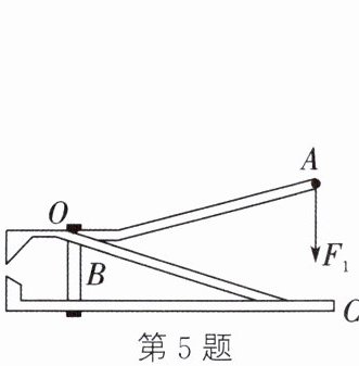 5. 如图是指甲剪的示意图。请在图中画出杠杆$ABO以O点为支点时动力F_{1}的力臂l_{1}和阻力F_{2}$。