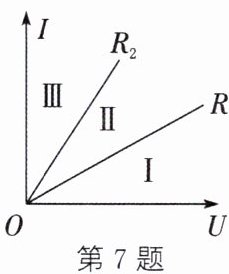 7. 有两个阻值不同的定值电阻R_{1}、R_{2},它们的电流随电压变化的 I-U 图像如图所示,若R_{1}、R_{2}串联后的总电阻为R_{串},并联后的总电阻为R_{并},则下列说法中不正确的是 (