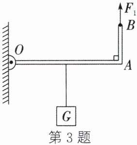 3. 如图所示,$OA$是杠杆,$OA与BA$垂直,在$OA的中点挂一重为G$的物体,加在$B点的动力F_{1}$由竖直向上的位置沿逆时针方向转到水平向左的位置,动力$F_{1}$的大小变化情况是