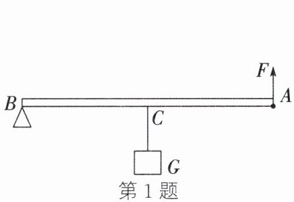 1. 如图,$AB为能绕B$点转动的轻质杠杆,中点$C$处用细线悬挂一重物,若保持拉力$F$方向不变,将拉力$F$缓慢向左移动一小段距离,则在移动的过程中,拉力$F$将 (