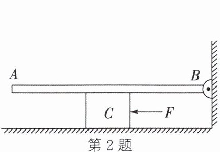2. 一均匀木板$AB$,$B$端固定在墙壁的转轴上,木板可在竖直面内转动,木板下垫有长方体木块$C$,恰好使木板水平放置,如图所示,现有水平力$F由B端向A端缓慢匀速推动木块C$,在推动过程中,推力$F$将 (