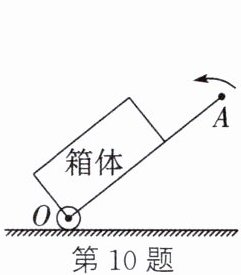 10. (2024·宿迁宿豫段考)如图,$O$为拉杆式旅行箱的轮轴,$OA$为拉杆。现在拉杆端点$A处施加力F$(未画出),使箱体从图中位置绕$O$点缓慢逆时针转至竖直位置。若力$F$的大小保持不变,则力$F$的方向应 (