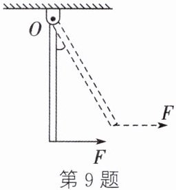 9. (2024·宿迁沭阳段考)如图,重为$G的均匀木棒竖直悬于O$点,在其下端施一水平拉力$F$,让棒缓慢转到图中虚线所示位置。在转动的过程中 (