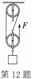 12. (2024·盐城东台一模)工人用如图所示装置在10s内将质量为45kg的货物匀速提升2m,此过程中拉力的功率为120W。不计绳重和轮与轴的摩擦。g取10N/kg,求: