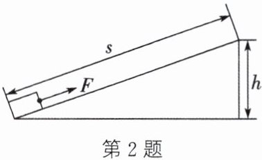 2. (2024·宿迁沭阳期中)如图,小明拉着质量为30kg的行李箱匀速经过一段长度$s= 3m$、高度$h= 1m$的斜坡路面,用时10s,若此过程拉力方向沿斜面向上,大小为125N。求:($g$取10N/kg)