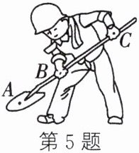 5. 如图所示,如果把正在铲土的铁锹看成是杠杆,图中A、B、C三点中,支点是
