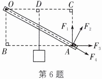 6. 如图所示,有一杠杆可绕O点转动,在其上某点挂一重物,现在A端施加动力$F_{A}$。