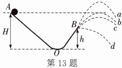 13. (易错题)如图,AOB是光滑轨道,A点的高度H大于B点的高度h,让小球从A点由静止开始自由滑下时,