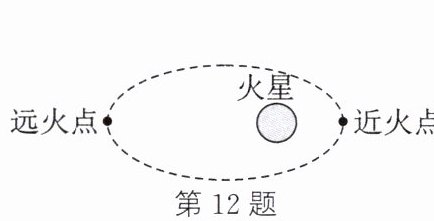 12. 如图,我国独立自主研制的火星探测器天问一号沿椭圆轨道绕火星运动时,不考虑空气阻力,只有动能和势能的相互转化,由近火点向远火点运动时,探测器的动能