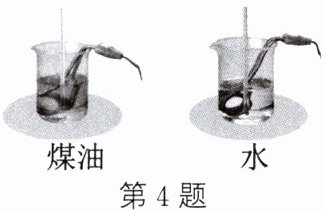 4. (2024·常州期末)如图所示,相同质量和初温的水和煤油,用功率相同的电热器加热相同的时间后,以下说法正确的是 (