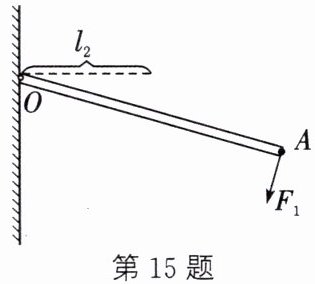 15. (2024·宿迁宿城一模)如图,杠杆OA处于静止状态,$l_{2}是力F_{2}$的力臂,请在图中画出力$F_{2}$的示意图。