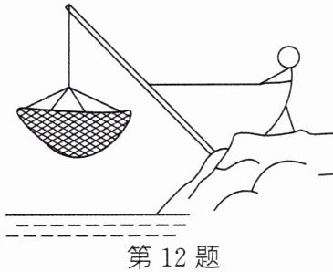 12. 如图是渔民在小河捕鱼的情景,请画出此渔民使渔网上升时杠杆的动力及动力臂。