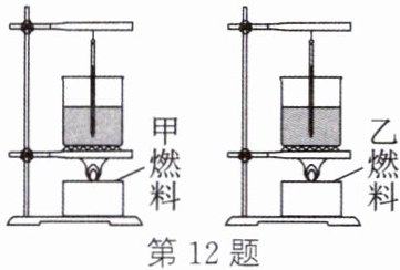 12. (2024·无锡锡山期末)如图所示,在两组相同的装置中,用甲、乙两种燃料分别加热质量和初温相同的水,燃料的质量用m表示,燃料充分燃尽时水升高的温度用$\Delta t$表示(水未沸腾),不计热量损失。下列说法正确的是 (