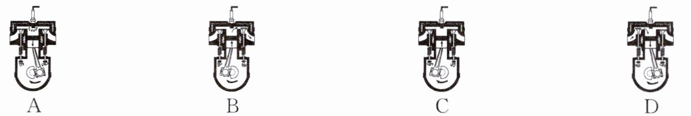 11. (2024·临沂)2024年4月20日,我国研制的全球首款本体热效率达53.09%的柴油机正式亮相世界内燃机大会,刷新了柴油机热效率的世界纪录。下列内燃机的四个冲程中,汽缸内气体的内能最小的是 (
