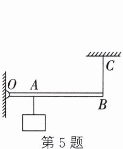 5. 如图所示,轻质均匀杆OB长70cm,能绕O点转动,B端用细绳BC悬于C点,有一重为49N的铁块挂在A点,OA长20cm。