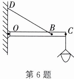 6. 如图所示,灯重为30N,灯挂在水平横杆的C端。O为杠杆的支点,水平横杆OC长为2m,杆重不计,BC长为0.5m,$∠DBO= 30^{\circ }$。