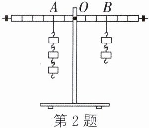 2. (2024·宿迁宿城二模)如图,在均匀杠杆的A处挂3个钩码,B处挂2个钩码,杠杆恰好在水平位置平衡。下列操作中,仍能使杠杆在水平位置平衡的是(所用钩码均相同)(