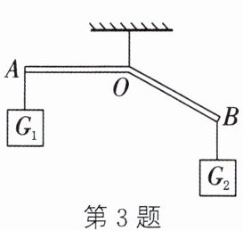 3. 如图所示,杠杆AOB用细线悬挂起来。当A端挂重物$G_{1}$,B端挂重物$G_{2}$时,杠杆平衡,此时OA恰好处于水平位置,$AO= BO$,杠杆重力不计,则(