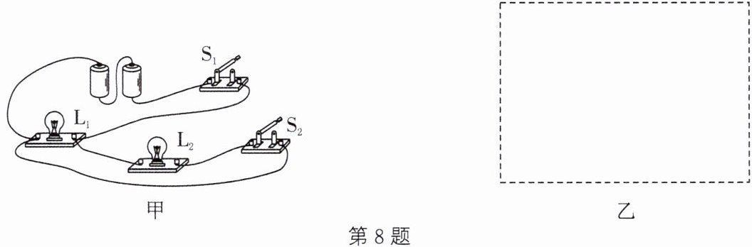 8. 根据如图甲所示的实物图,在如图乙所示的虚线框内画出电路图。