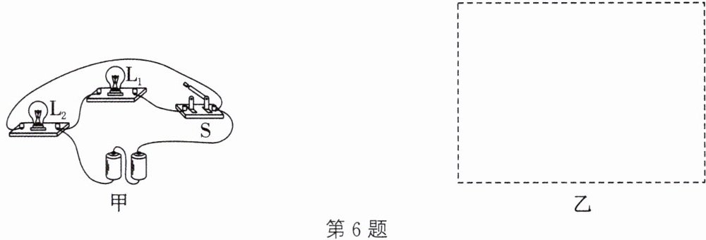 6. 根据如图甲所示的实物连接图,在如图乙所示的虚线框中画出与它对应的电路图。