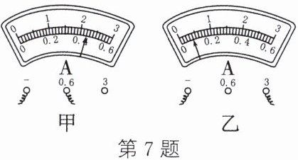 7. 对通过同一段电路的电流先后两次测量的结果如图,图甲选用的量程是