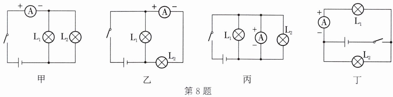 8. 观察下列四幅电路图,并填空。