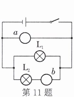 11. 如图所示,在两只灯泡 $L_{1}$ 和 $L_{2}$ 并联的电路中,a、b 表示电压表或电流表,则可判断:a 是